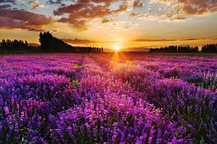 普羅旺斯暮色:夕陽與紅霞漫天散開,光影糅合大片花海,只能用震撼形容了!銀色、紫色、金色、綠色、紅色層次分明,勝似天上人間!