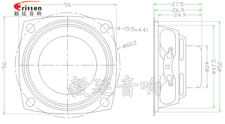 56mm異型鐵盆架內(nèi)磁全頻喇叭,具有穩(wěn)定的稀土高強(qiáng)磁,音色清晰、悅耳;