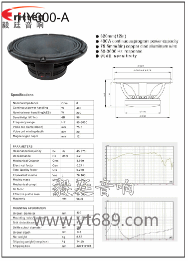 此款12寸75芯200瓦重低音喇叭,強勁有力,額定功率達到450W,最大能承載900W,也可用于、KTV音箱、演唱會音箱、廣場音箱、超大型超級舞臺音箱上,靈敏度達到96dB,使喇叭強勁音效超乎想象,足以讓搖滾發(fā)燒友為之瘋狂。
